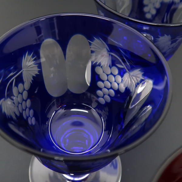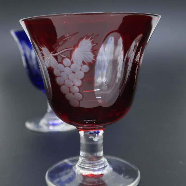 江戸切子 ワイングラス 4客セット 葡萄 ブドウ 青2客 赤2客 中古 / 質屋出品 つじの